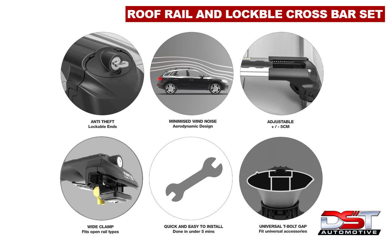 The Roof Rails and lockable crossbar set will keep your vehicle looking cool whilst also giving you the option to carry loads up to 75kg! Made of lightweight aluminium, your driving style will not be impeded with this efficient and stylish set of Roof Bars.  Due to the durability and aerodynamic styling of this part, you will not have to remove them when not carrying loads. They are designed to look good as well as be a useful addition.