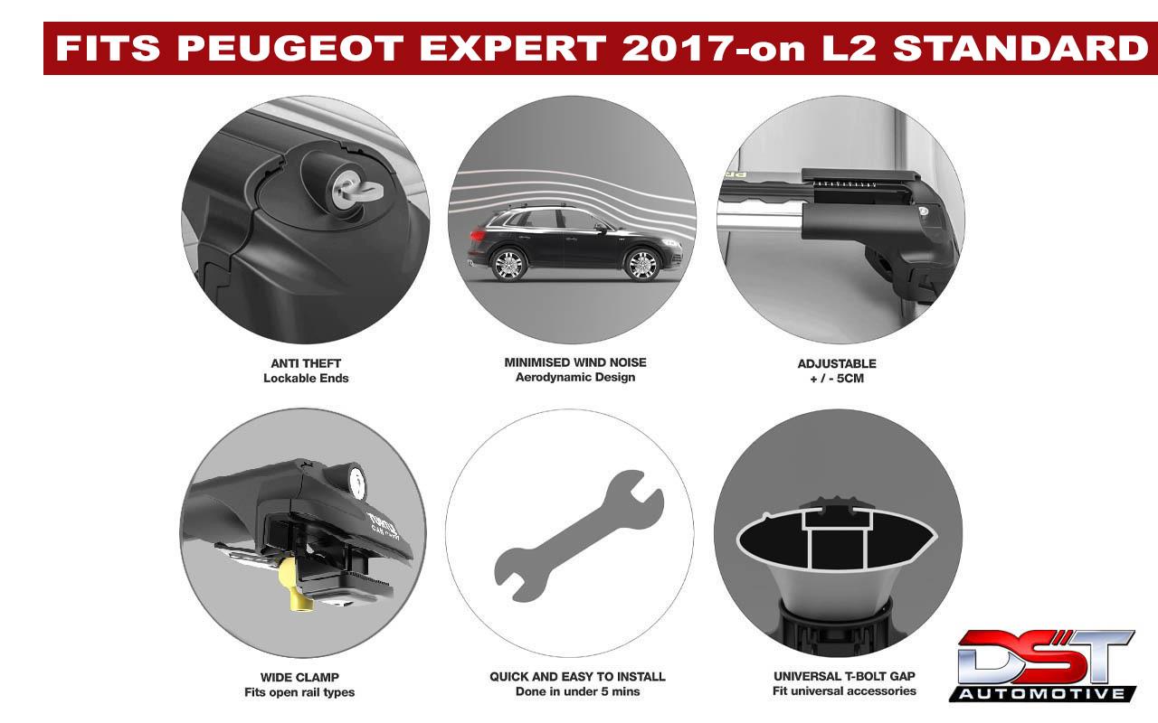Peugeot Expert Roof Rack Rails & Lockable Cross Bars Set -