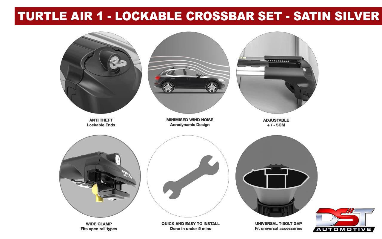 Our DST Auto Expert roof rails and lockable crossbar set will keep your vehicle looking cool whilst also giving you the option to carry loads up to 75kg! Made of lightweight aluminium, your driving style will not be impeded with this efficient and stylish set of Roof Bars. Due to the durability and aerodynamic styling of this part, you will not have to remove them when not carrying loads. They are designed to look good as well as be a useful addition.