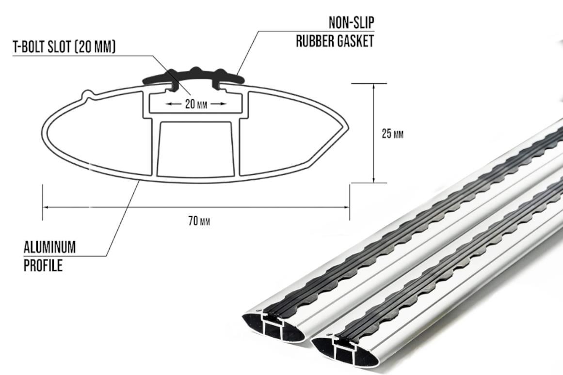 The Turtle Air-3 Pro roof rack is designed to fit stright into your original factory mounting point on your roof. If you are you limited for space when traveling, a roof rack is the perfect solution for you. Giving you the option to carry loads on your roof, or even mount carry systems with the intergrated T-Track channel, which can be used for Bike racks, kannou carriers, Roof Boxes and much more.